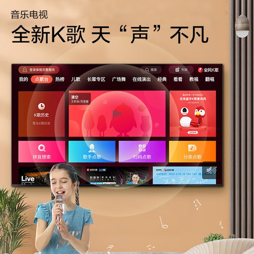 4K超高清的全面屏,屏幕占比达到96%,带来沉浸式的观影。全新K歌模式,搭载海量的曲库,想唱就唱。