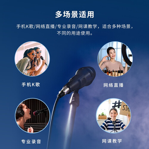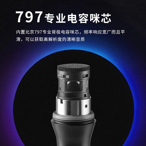 精选专业品质电容咪芯,广频响应,音质清晰;心形拾音,拾音精准避免嘈杂;金属管体、细腻工艺,手感舒适。
