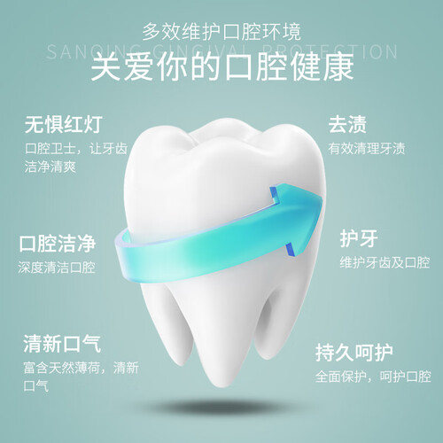 甄选金银花和三七提取物,可以养护牙龈,带来清凉舒爽之感。有效预防蛀牙,形成持久防护,防止牙结石沉积。