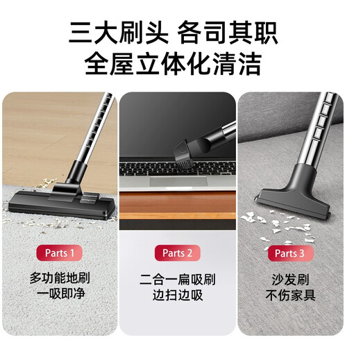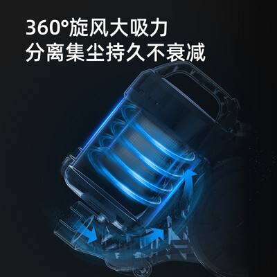 360°旋风大吸力设计,立体清洁不留死角,提升清洁效率。采用整机密封,搭配改良风道设计,有效静音降噪。