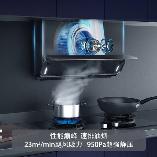 18cm轻薄机身,释放上柜空间。老板劲薄科技,澎湃吸力瞬吸爆炒油烟。垂直上排,缩短拢烟路径,从源头吸净油烟。