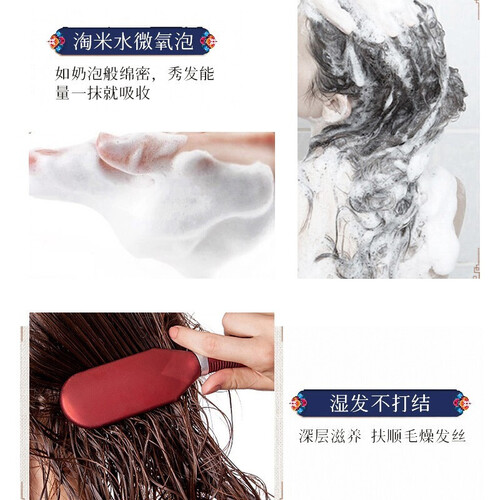 绵密细腻的淘米水微氧泡,促进秀发营养吸收。能够深层滋养避免打结,抚平毛躁的发质。