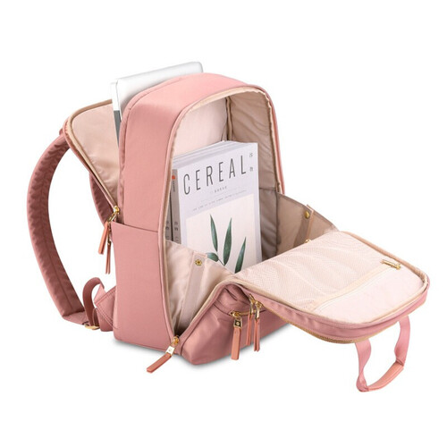 180°大开口设计,存取物品更方便,出行轻松舒适。活泼粉色配色,搭配防泼溅面料,兼具美观与实用性,适合职场女性使用。