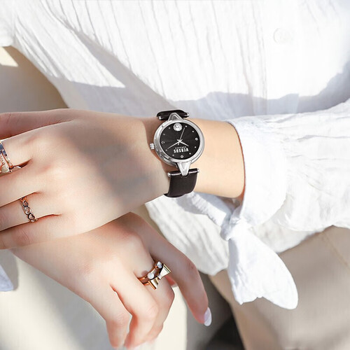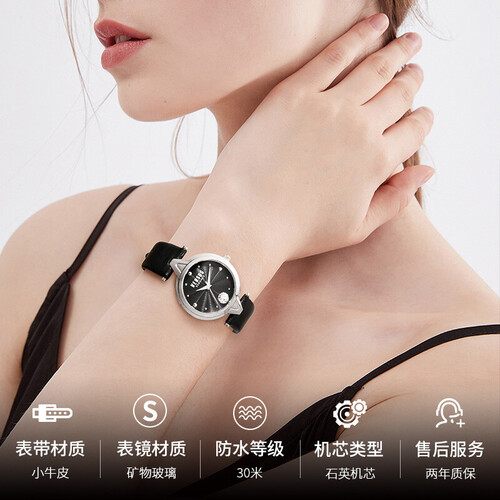 内置进口石英机芯,能够使得性能更加稳定,走时更准。小牛皮材质制作表带,柔韧不生硬,提供舒适的佩戴感受。
