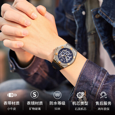 表壳使用精钢打造而成,配备数字条钉组合刻度,细节丰富,加上搭载进口石英机芯,走时稳定,读时更准确。