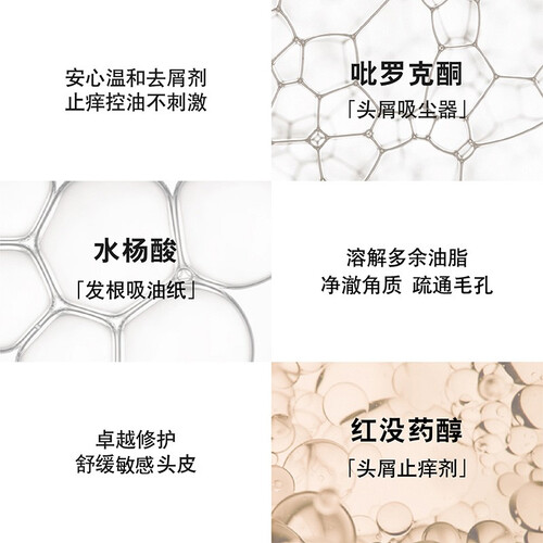 水杨酸精调比例,犹如吸油纸一般,全面吸附油脂分泌,头皮头发清爽无痕。红没药醇舒缓止痒,起到镇定防过敏作用。