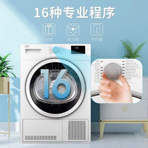 16种烘干程序,可根据不同面料进行选择使用,贴心呵护衣物纤维,护形护色。风冷技术,实现快速净味,清新衣物。
