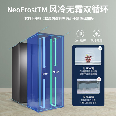 新升级智能净味系统,自动吸附箱体异味,营造清新的存储环境。搭载冷风双循环技术,独立运行,食材维持新鲜状态。