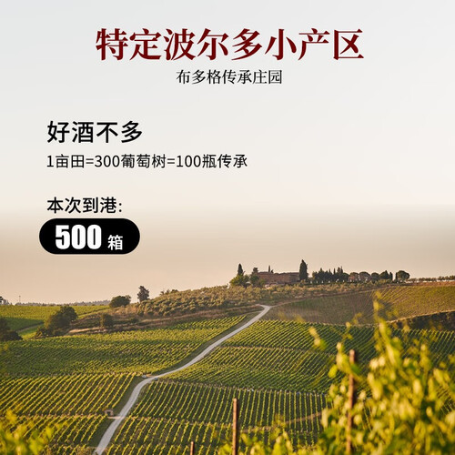 选用波尔多AOC级产区,果粒饱满多汁,让您尽享美酒味蕾体验。搭配橡木桶陈酿技术,低温发酵,酒体色泽圆润。