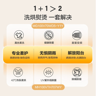 精湛的制作工艺,使整体运行时产生的噪音较低,有效防止打扰家人休息。多种洗烘程序,轻松应对不同需求。