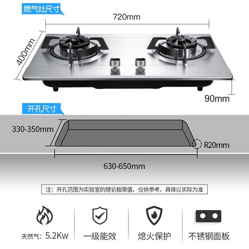 带有熄火断气保护功能,不用担心日常忘记熄火的问题,呵护使用安全;设有可拆卸火盖,藏匿油污快速打理,减轻家务清洁负担。