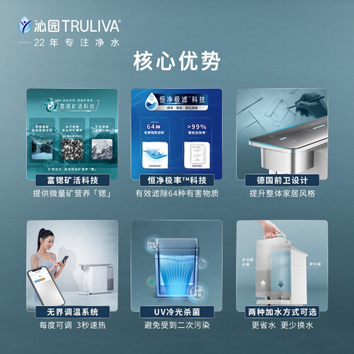顶置式操作面板,符合人体工学设计,功能指示清晰明了。可通过手机APP,调整温度和水量,水温可准确至1℃。
