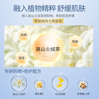 物理化学双重防晒科技的应用,使得防晒效果翻倍,轻松满足日常所需。防晒隔离同步进行,减少了肌肤的负担感。