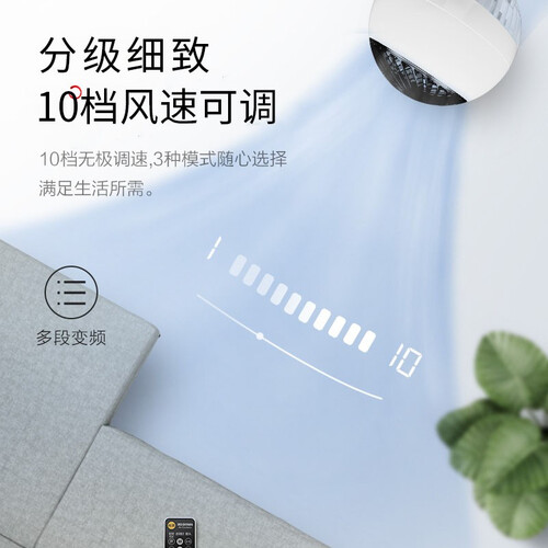 这款电风扇利用空气动力学原理,可循环送风,快速均衡室内温度。且机身小巧,可节省空间占用。
