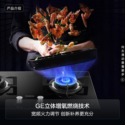 搭载瞬燃点火科技,无需按压等待,一步到位,美食不用等。拥有简约雅致外观,打造至简厨房美学,可大幅提升厨居品味。