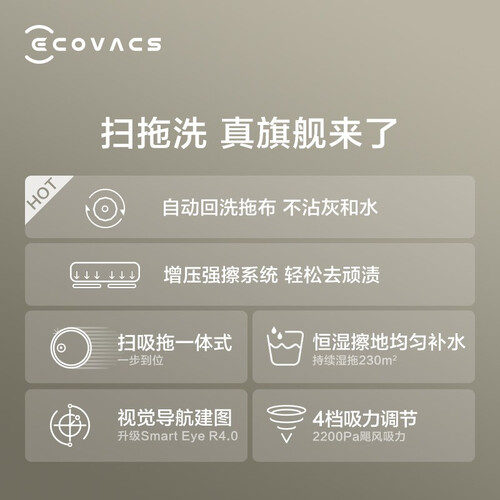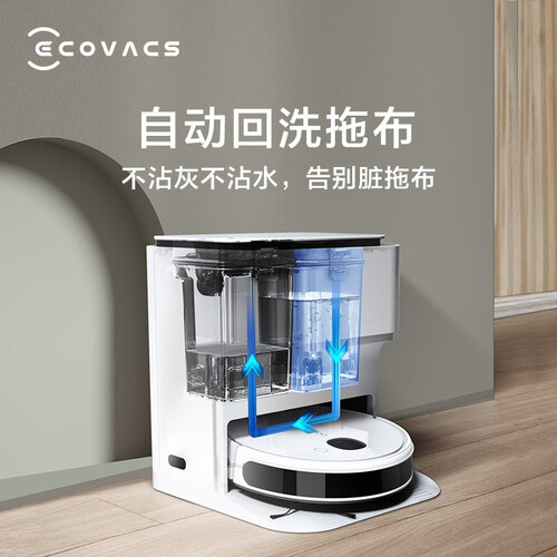 支持自动回洗抹布,每擦完一块地面,科沃斯N9+都会自主返回基站清洗脏拖布,可无需人工干预,确保每次出发拖布都“洁净如新”。