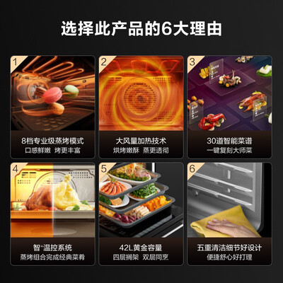 大容量加多层搁架结构设计,一次出餐量大,能满足全家人胃口,搭配大功率设计,蒸汽效率高,能蒸出食物原香。