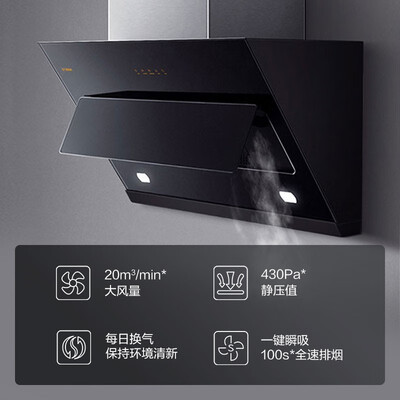 多点一线式进风通道,减少拐弯转角,帮助排烟过程更顺畅。拥有每日换气功能,定时运行,吸走残余油烟,保持厨房空气清新。