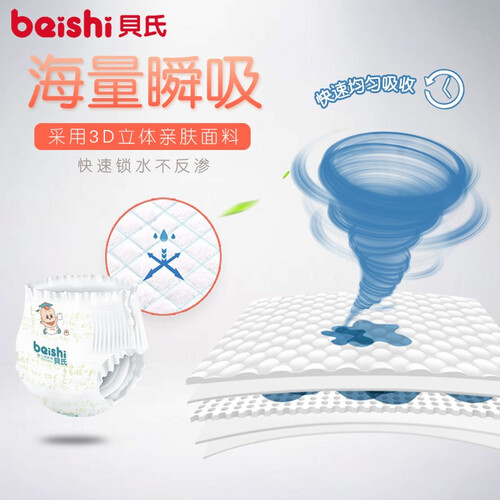 这款拉拉裤具有良好的吸水能力,宝宝有尿时,轻松吸取,夜里睡觉更安稳,而弹性腰围,松紧度刚刚好,不勒小肚肚。