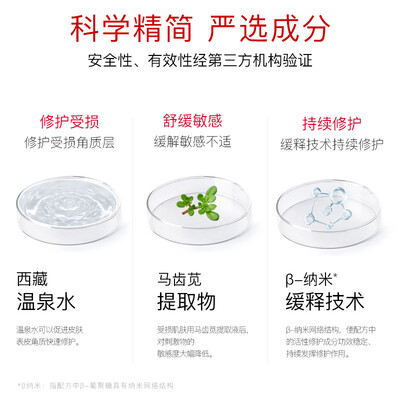 添加红没药醇成分,温和舒缓修护泛红敏感,降低产品刺激度,敏肌无忧。β-葡聚糖,深层滋养促进养分吸收,释放年轻活力。