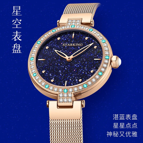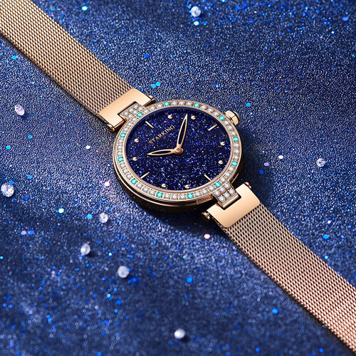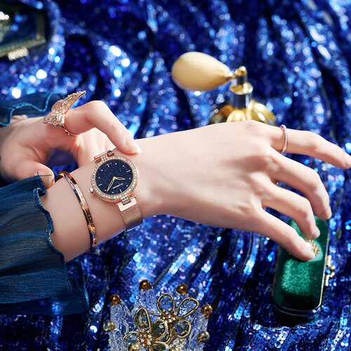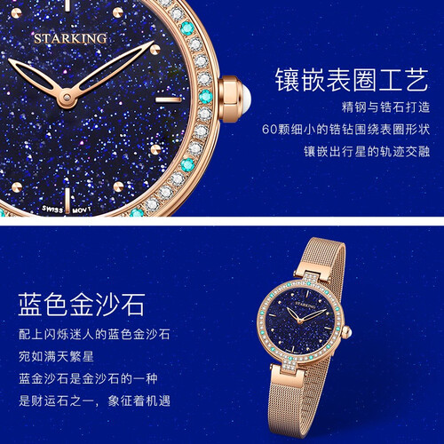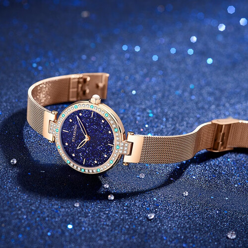 璀璨的星空蓝色调,展现优雅时尚,呈现一种动态美。采用精密镶嵌工艺,60颗闪耀皓钻,让腕间更加流光溢彩。