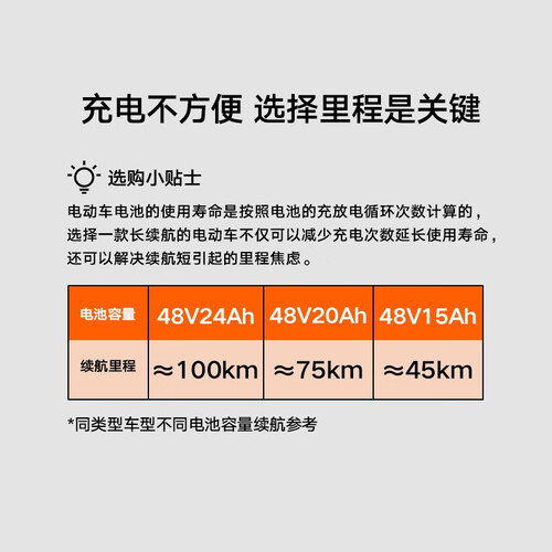 内置汽车级大容量锂电池,充沛的电量,提升续航里程高达100km,远距离出行更方便。搭配大码数显屏,行车数据显示一目了然。