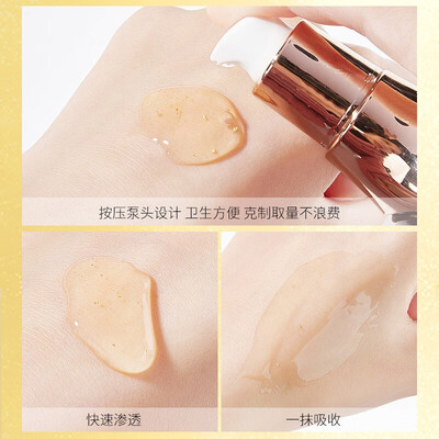 质地水润清透,轻轻涂抹迅速吸收,不会给肌肤毛孔造成负担。添加珍稀的金箔成分,匀净肌肤对抗暗沉,呈现理想光泽度。