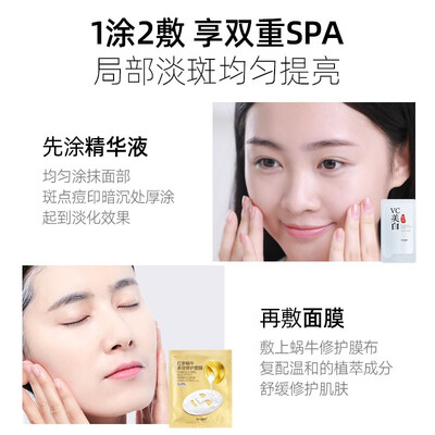 精华液均匀涂抹面部,能够淡化痘印,减缓暗沉。搭配蜗牛修护膜步使用,含有温和的植萃成分,舒缓修护肌肤。