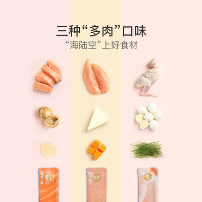 甄选天然食材,不添加诱食剂,不添加工业明胶和色素,放心喂养。内含三文鱼、扇贝肉,肉质鲜嫩,肉香浓郁扑鼻。促进消化吸收,柔顺毛发。