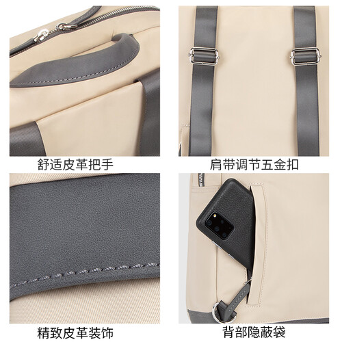 采用高密度斥水尼龙和皮革编织,不仅彰显出高级质感还能坚固耐磨,精致光泽感让人赏心悦目。