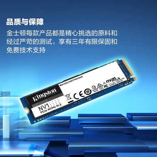 金士顿NV1系列固态硬盘,具备高速读写的性能,全面提升工作效率。单面M.2设计,可连接多款设备,应对多种使用需求。