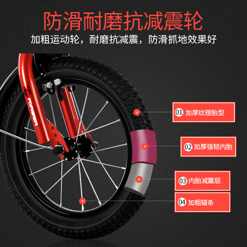 包裹式链罩有效防止夹伤宝宝,鞍座柔软高弹,舒适减震,久骑不累,前后双刹车反应灵敏,骑行安全有保障。