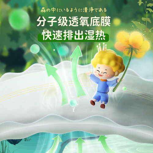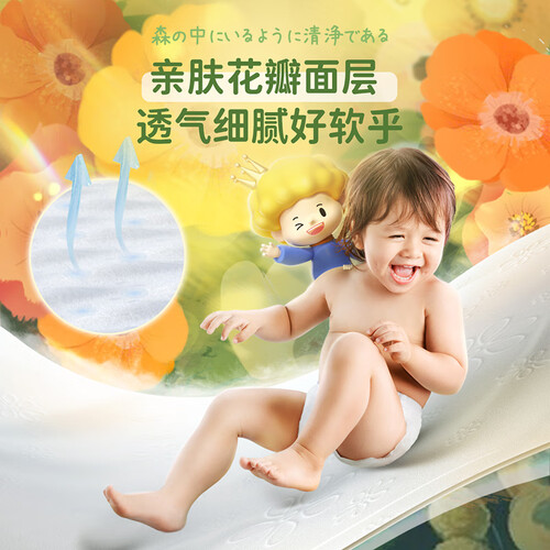轻薄透气芯体结合透气底膜形成的风感透气系统,瞬间吸收尿液无残留。高弹防漏腰腿围,满足学步期宝贝的多种需求。