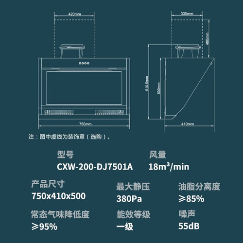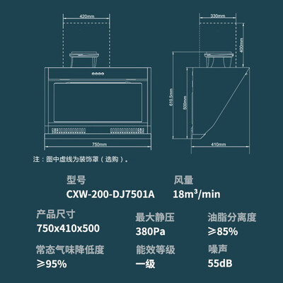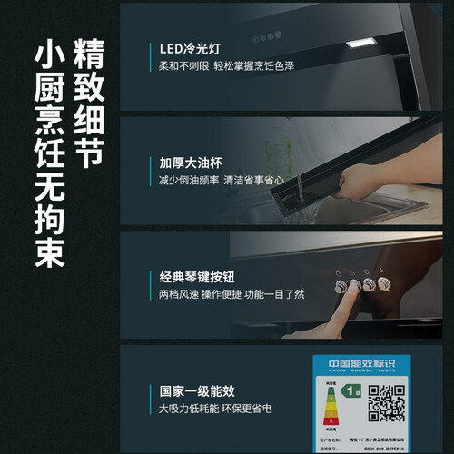 750mm的机身设计,有效节约厨房的空间,驾驭各种厨房户型。黑晶面板+简约的外观,打造靓丽的厨房,整体赏心悦目。
