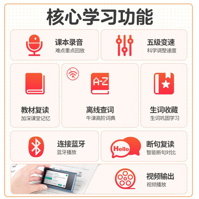 内置正版高阶牛津词典,拥有海量词库,哪里不会查哪里,学习更有动力,更有课堂随堂录音功能,记录学习重点,回家也能学。