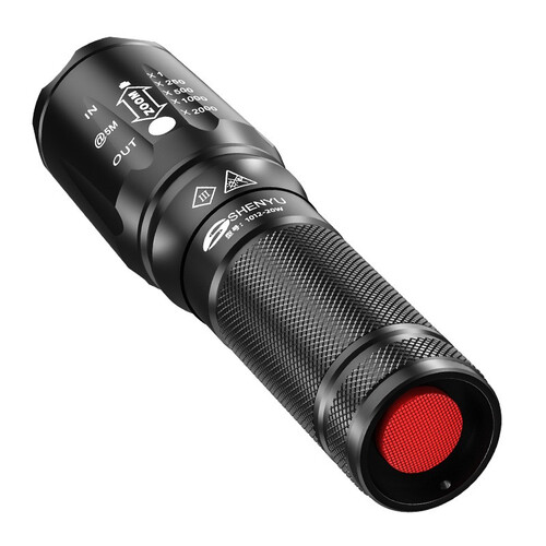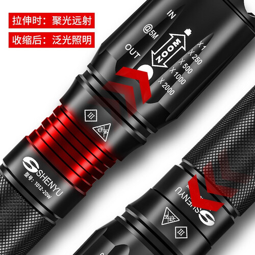 手电筒尾部一键式开关,操作简单方便;多种挡位选择,满足各种使用需求;升级灯芯能够有效散热,延长手电筒的使用寿命。