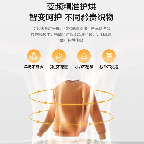 双重毛屑过滤,可有效去除掉沾染在衣物上的毛发,还原洁净状态。带有蒸汽护理功能,烘干衣物的同时还防止起皱,无需单独打理。