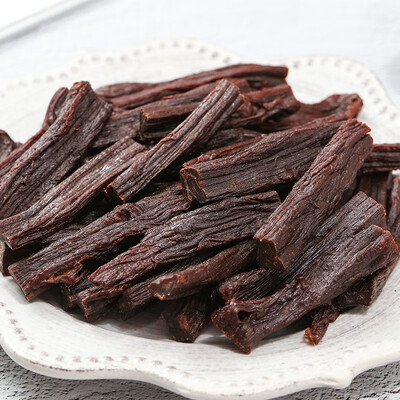 精选优质的牛后腿肉进行制作,脂肪含量少且肉质很紧实,很适合制作牛肉干。挂晒风干后的牛肉干,干而不柴,吃着满嘴肉香味。