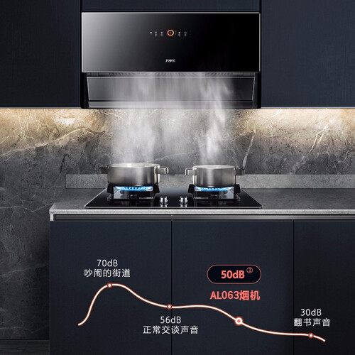 22m³飓风吸力,迅速排清厨房油烟,享受清新自然的空气。结合50分贝低噪音运行,不会打扰烹饪好心情。