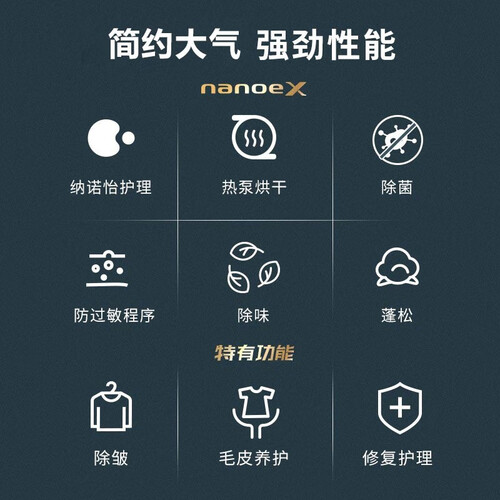 精选松下原装双转子压缩机,效率更高,噪音更低,更加节能省电。拥有6大护理程序,便于多方位呵护衣物面料。
