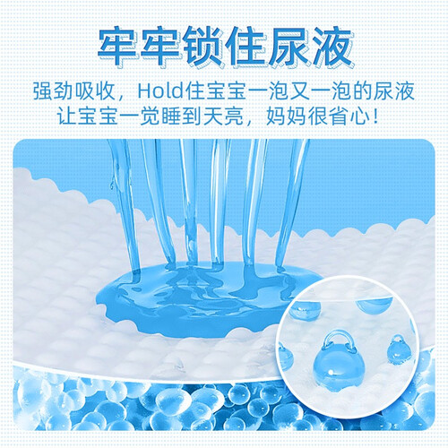 人体工程学设计的立体护围,贴心的外翻设计,有效防止尿液侧漏。裆部采用交叉橡皮筋,吸收尿液后不易下坠。