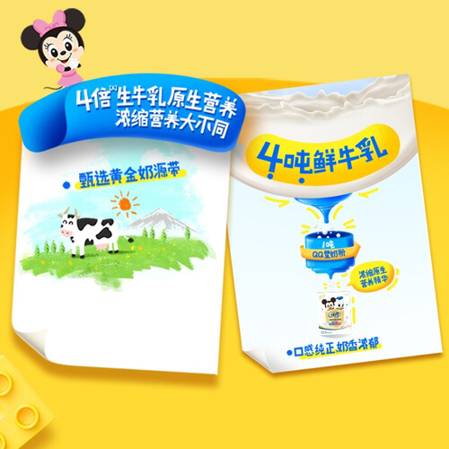 配方源于儿童营养研究,专为3岁以上儿童定制,采用4倍浓缩鲜牛乳,添加蛋白质、乳铁蛋白、益生菌、钙等营养,满足成长需求。