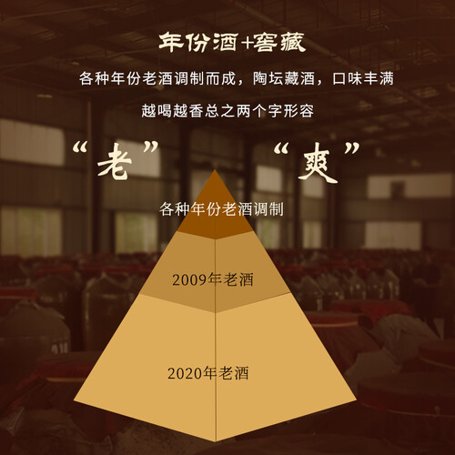 选用不同年份的老酒进行调整,陶坛藏酒,口味更强。白酒有突出的粮食味,十分甘醇,它的酒香十足,飘香浓郁。
