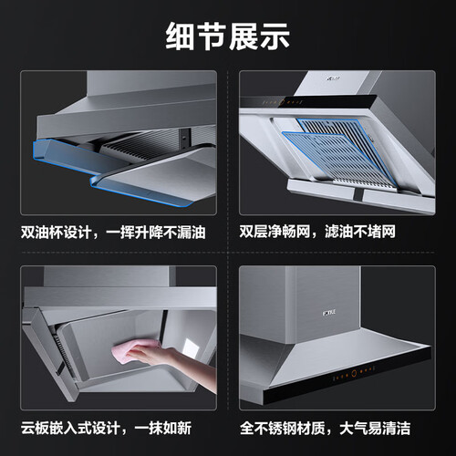 采用蝶翼环吸科技,增大负压笼罩区,多方位捕捉油烟。拥有降噪技术,低音烹饪不易打扰休息,享受安静舒适生活。