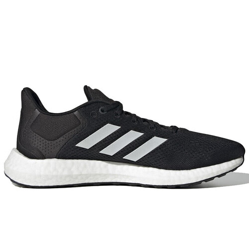 中底搭载boost科技,有效减震缓冲,提升运动表现。白色三条纹设计,与黑色基调对比鲜明,凸显出活力运动范。