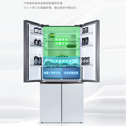 搭载生态保湿舱,根据食材存储需求调湿,守护食材新鲜。搭载AI智控家电,随时远程操控,时刻掌握食材状态。
