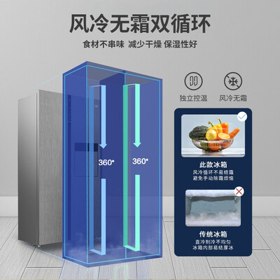 特设恒蕴养鲜室,有效提升存储湿度,为果蔬食材提供更好的存储环境。风冷双循环,实现均匀制冷,避免出现霜冻情况。