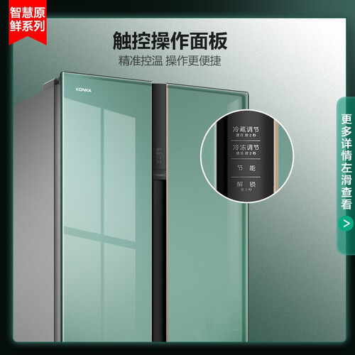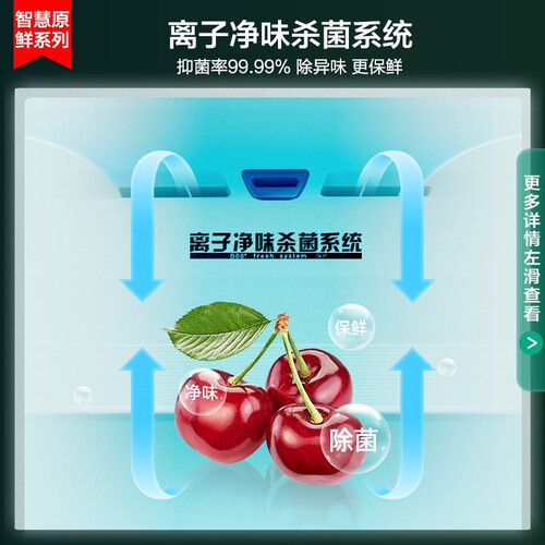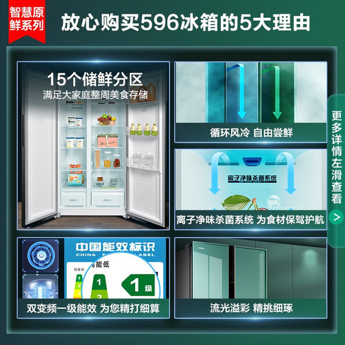 循环风冷,精控多风道出风,立体循环制冷,食材鲜润刚刚好。一级能效双变频,低噪轻音运行,低能耗节能精打细算。