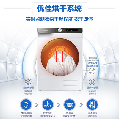 8KG大容量设计,窗帘四件套统统装得下,轻松满足你的干衣需求。采用AI智能控制,告别繁琐操控,轻松使用。
