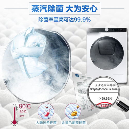 AI智能控制,通过分析日常洗衣习惯,智能推荐洗涤程序。蒸汽除菌功能,除菌率高,关爱娇嫩美肌,守护穿衣健康。